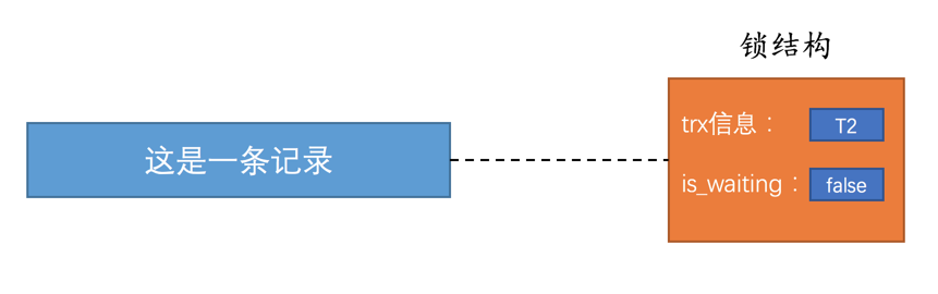 然后也生成了一个锁结构与这条记录关联,不过锁结构的is_waiting属性值为true,表示当前事务需要等待,